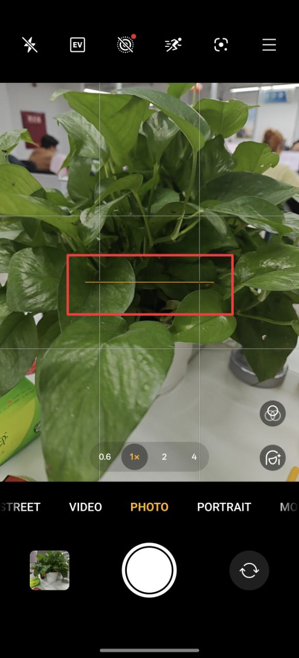 When the camera's level is activated, a cross or horizontal line will appear at the center of the screen during shooting. If the double cross in the center aligns and changes color, it indicates that the phone is parallel to the ground. If the horizontal line in the center aligns and changes color, it indicates that the phone is vertical to the ground.