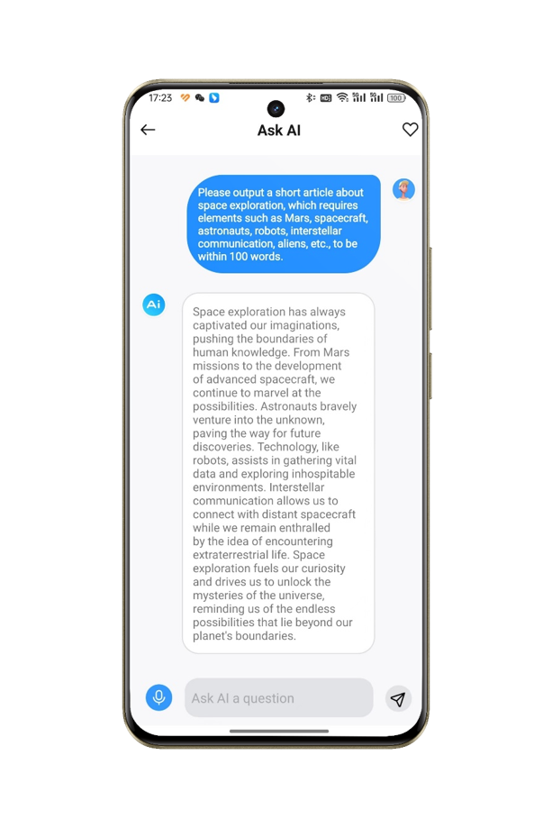 realme Watch S2 with ChatGPT 3.5 is your distinctive smart personal assistant. You can voice to it almost all the requests in life, including complicated questions, while others with google assistant or Siri can not answer.