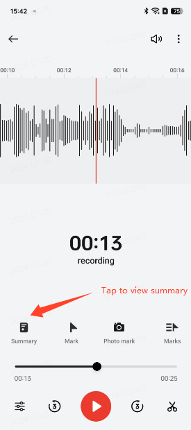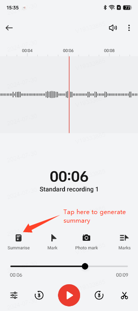 " to start recording. Save the recorded audio. Alternatively, you can tap a recording in the Recorder app to play it, then tap Summarize.To view a summary, tap "