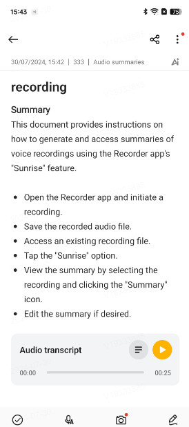 " on a recording from your recordings list, or tap the recording, go to Audio or Text, then tap Summary.To edit the summary, tap the text you want to edit in the summary.