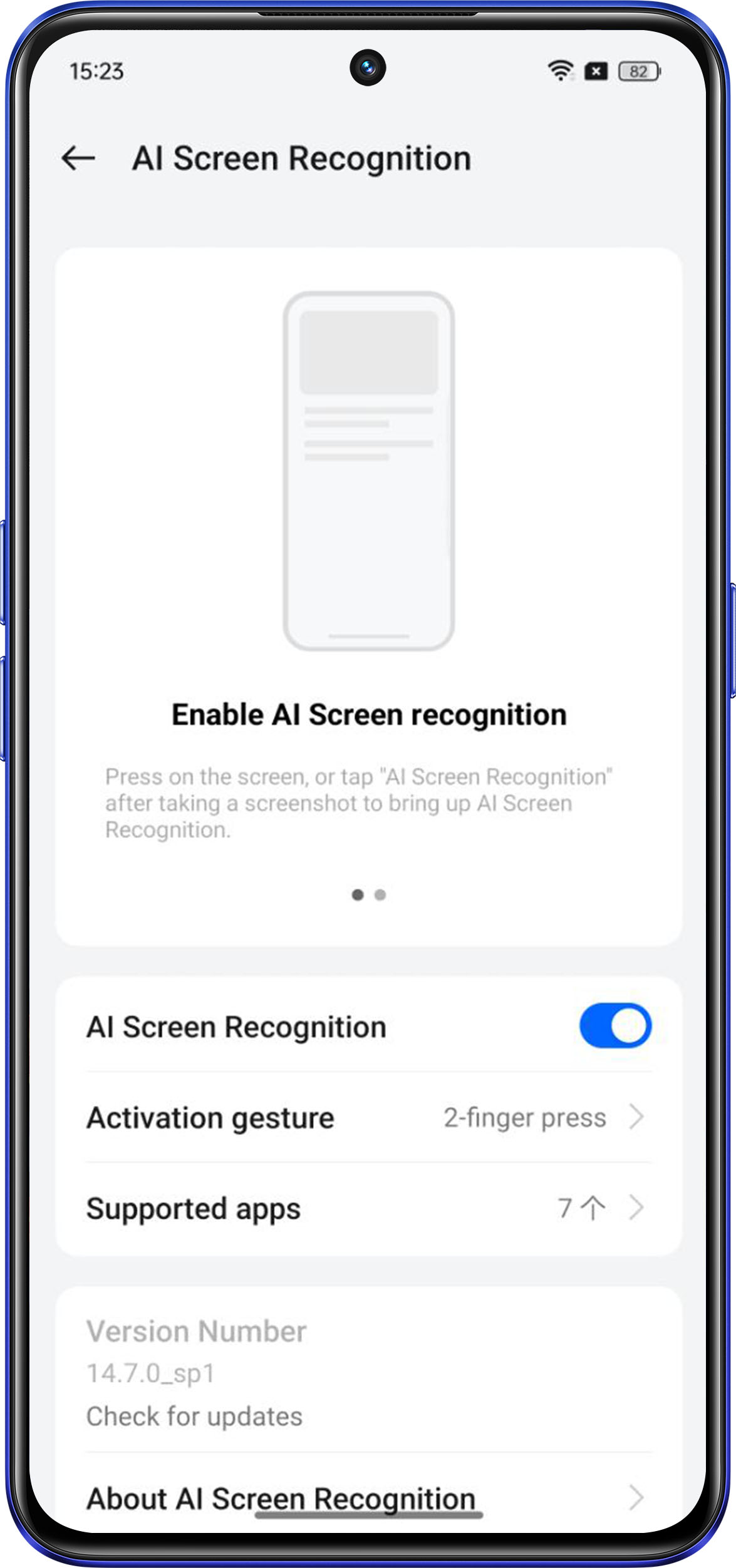 Click supported apps, you can open or view apps that support AI Screen Recognition. And you can turn on the switch of the apps that you like.
