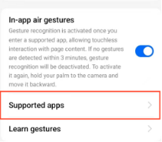 Application air gestures Specific applications that are supported when using air gestures will layout downside the page, and currently only supports YouTube, Facebook, and TiKTok.