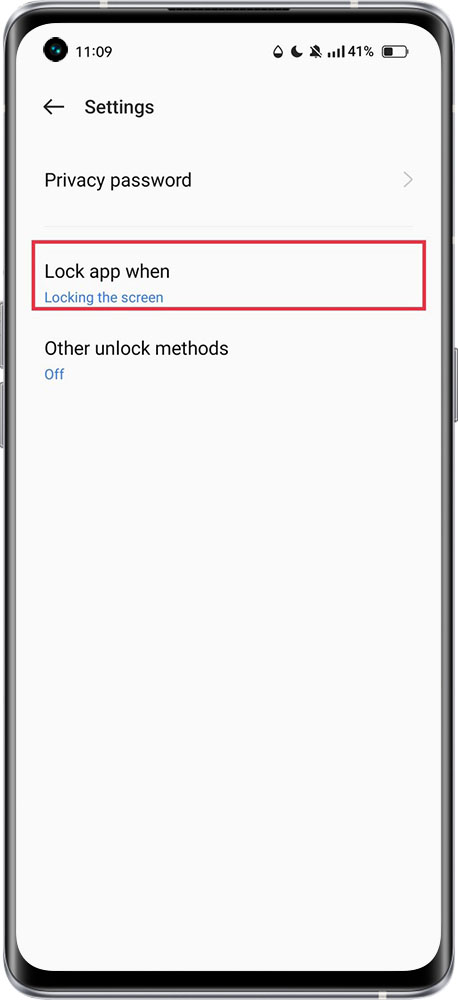 realme UI 2.0: Settings > Privacy > App Lock > Click two dots on the top right-Settings > Turn off Leave apps unlocked.