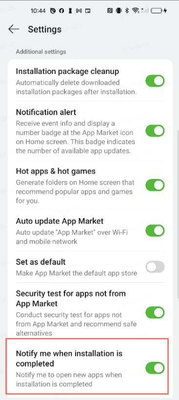 When installing certain apps through the app store (APP Market), an automatic countdown appears on the recommendation page. After the countdown ends, it automatically enters the installed app.