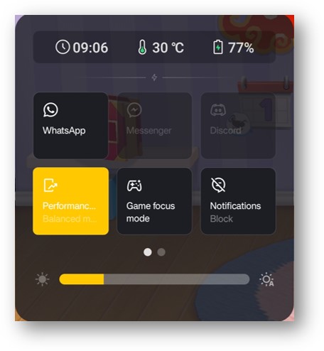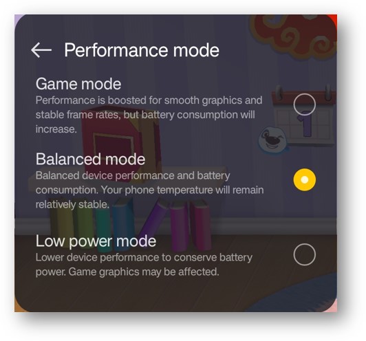 Players can choose Game mode, Balanced mode and Low power mode according to different needs. In Game mode players can get the best game experience.