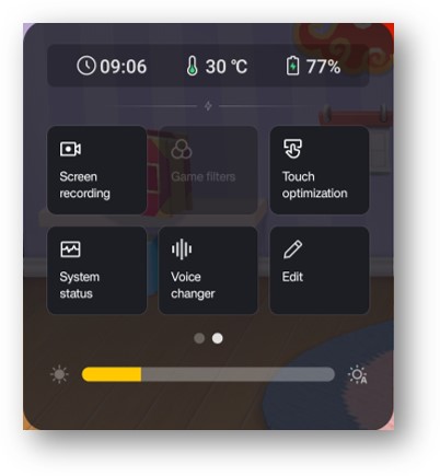 Game Toolkit is similar with Game Assistant of Game space, players can choose different performance mode, check system status, open others apps, block notifications or get the voice changer .