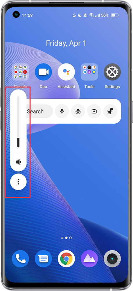You can adjust the volume by clicking the side volume key. When you click the side volume key, a volume bar appears on the left side of the screen. You can quickly adjust the volume by sliding.