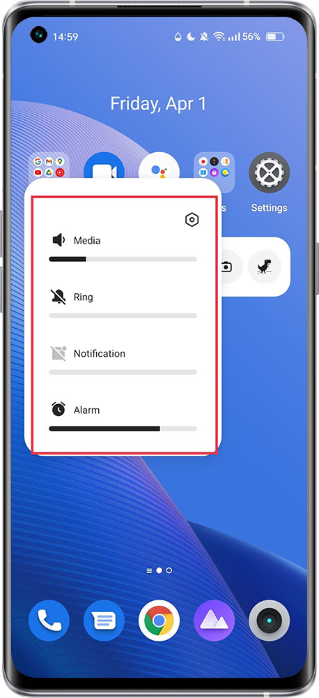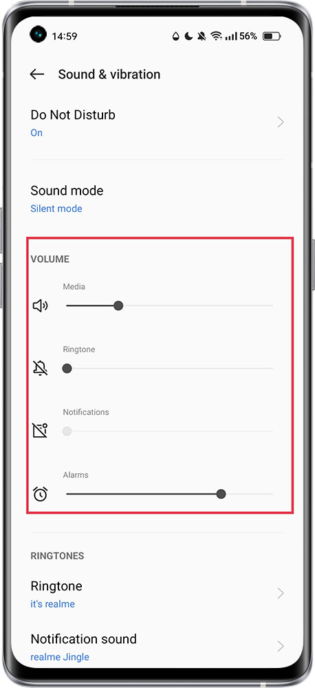 Click on the three points below the volume bar to set the media, ringtone and alarm volume separately.