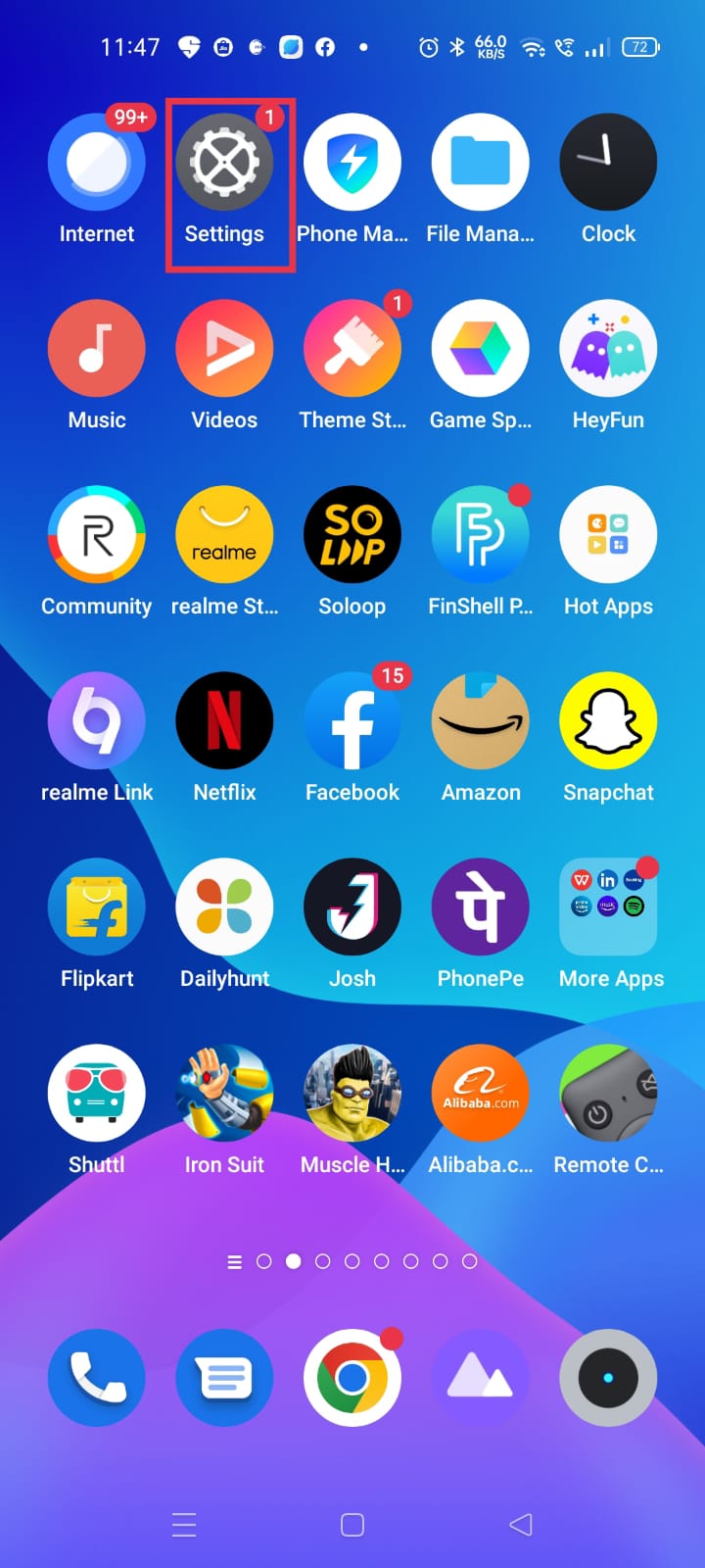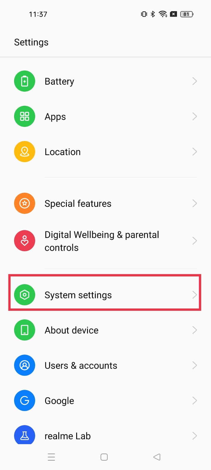 realme UI 1.0 & 2.0: Settings > Software update.
