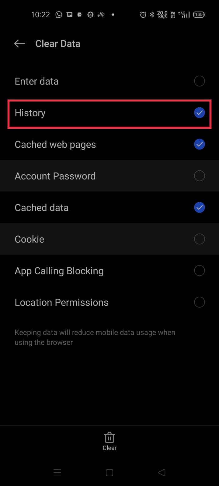 Step 1: Click on Internet > Click on the three lines below > Settings > Clear data > Choose History > Clear.
