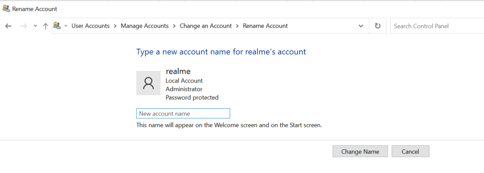 3. After entering your new account name, click "Change name".