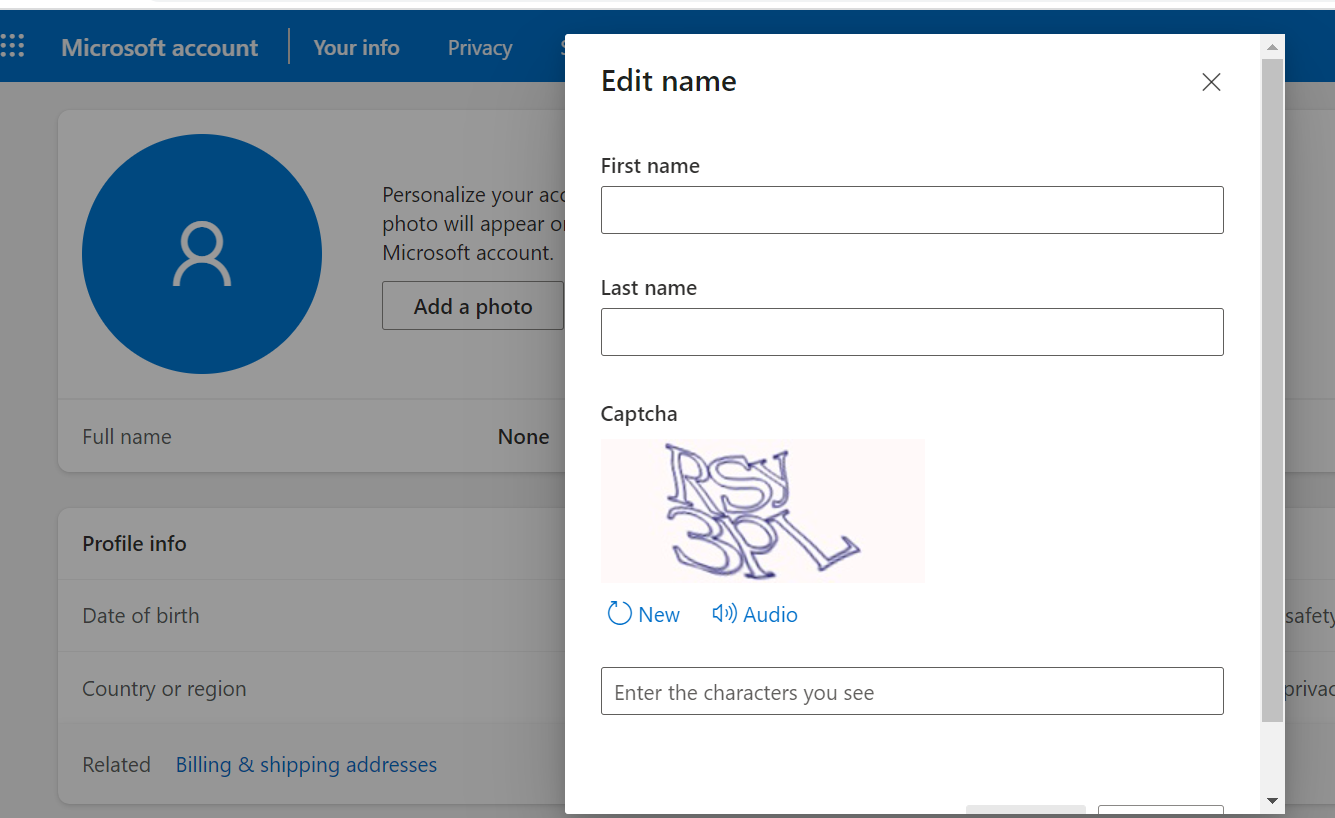 Please open the Microsoft website (https://account.microsoft.com/account/), log in to your Microsoft account, click on "More Actions > Edit Profile", and then click on "Edit Name ". You can also set your Microsoft account avatar by clicking "Add Image" on this screen.