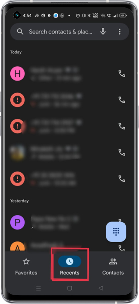 Open the Phone app > Recent > to view the recent calls detail whether it’s spam or a Normal call from any number.