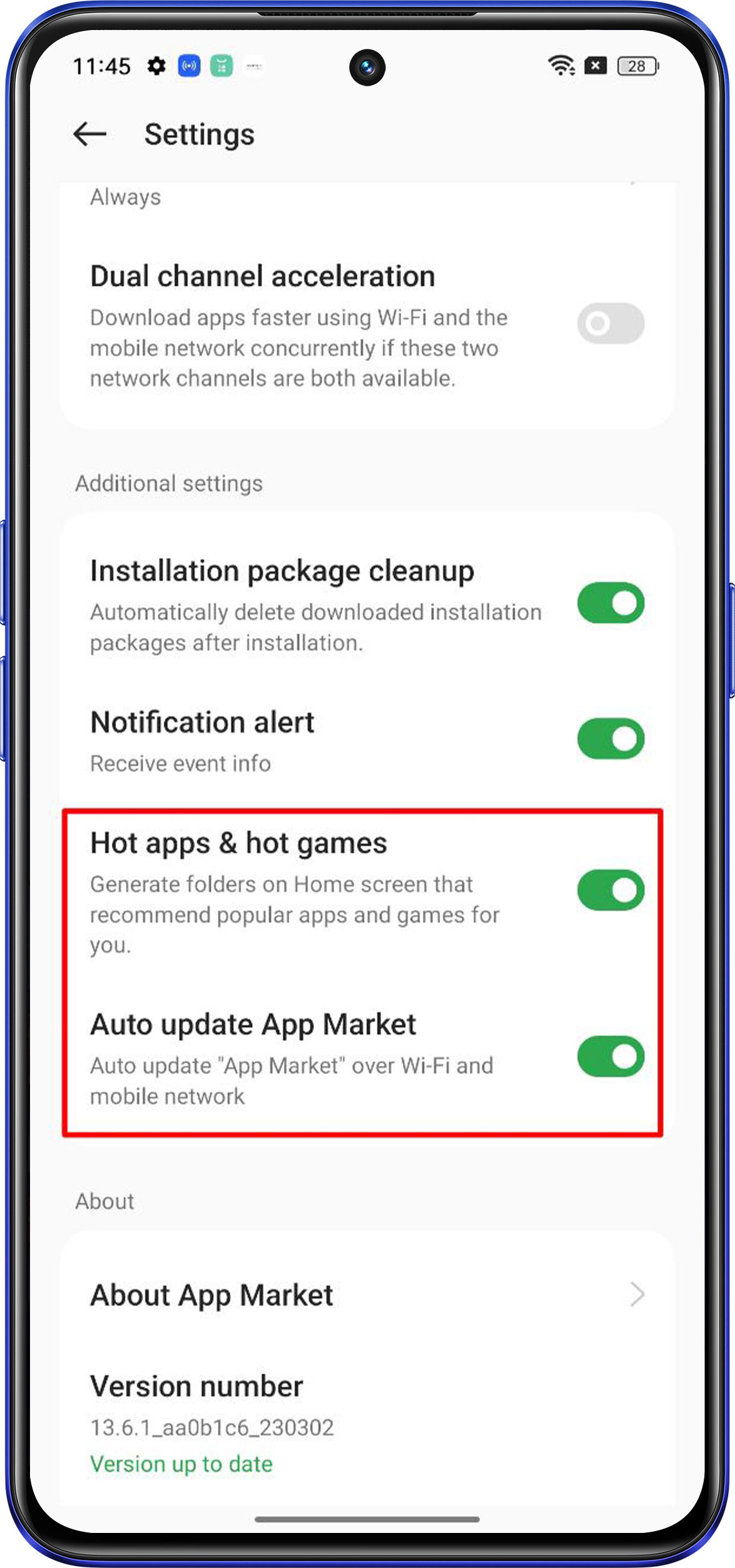 For Hot Apps and Hot Games: Long press the Hot Apps or Hot Games folder > Settings > Disable Hot apps & Hot games.