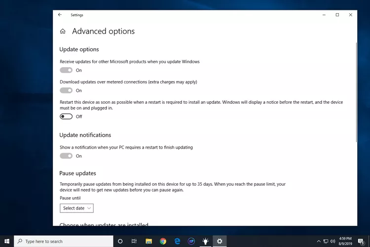 5. The various settings on this page control how Windows 10 downloads and installs updates for the operating system and perhaps other software from Microsoft.