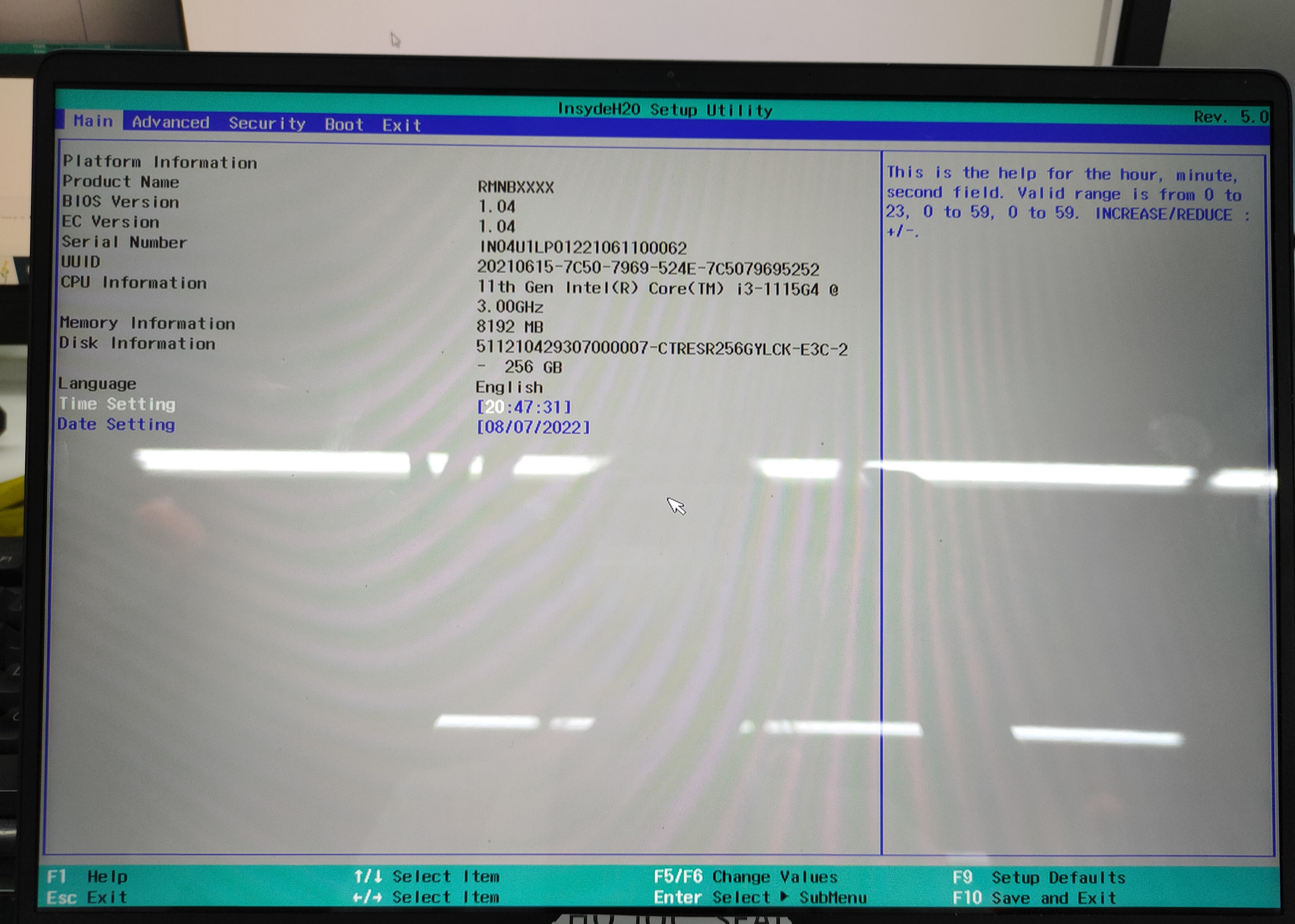 Press the power button to power on, and when the realme logo icon appears, press F2 to enter the BIOS page.