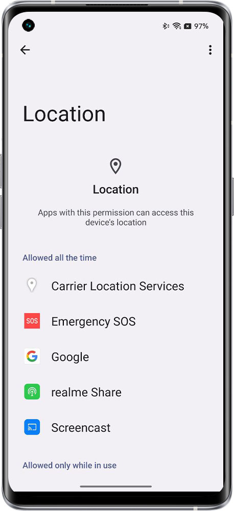 realme UI 4.0 & 3.0 & 2.0: Settings > Privacy > Permission manager > Location