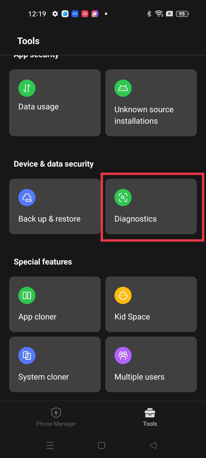 Note: realme UI R & T & S & Go & U Edition does not support Diagnostics.