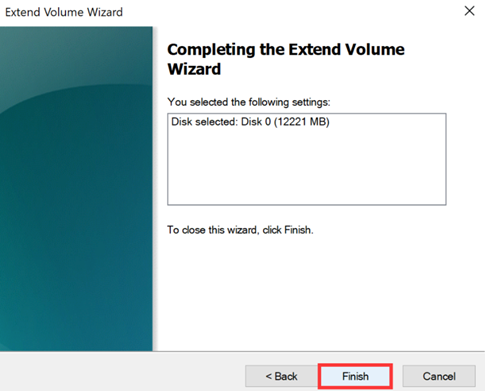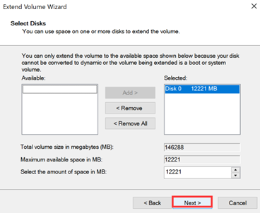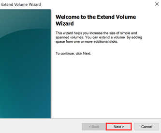 4. Click Next in the Extend Volume Wizard pop-up dialog box.
