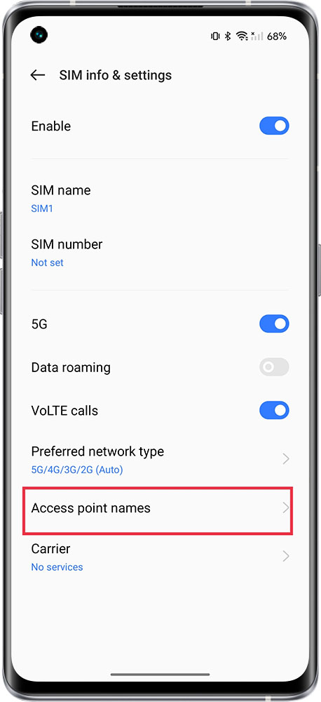 realme UI 3.0 & above versions: Settings > Mobile network > Select network card > Access point names > 3 dots in the upper right corner > Reset access points