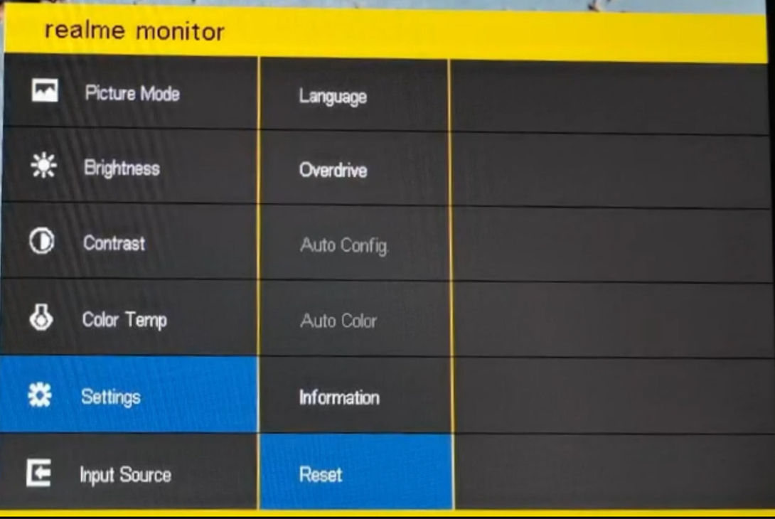 Step 3: The last option is Reset. Press the multifunction switch to the right to enter the reset selection menu.