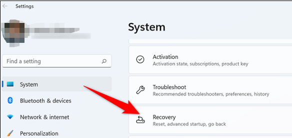 2. Select System > Recovery.