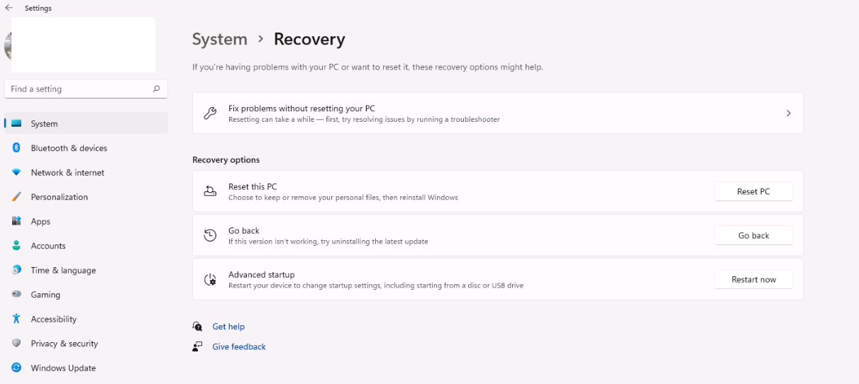 If your realme laptop can boot into the desktop, reset the system through the recovery function that comes with the Windows 11 system to restore the system to its original state at the time of installation.