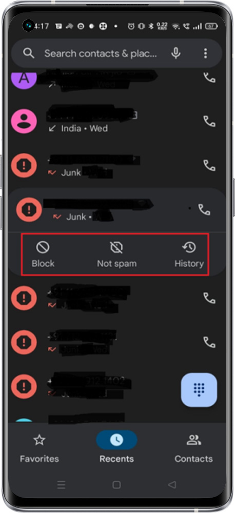 2. We can save the unfamiliar contact like incoming calls or Missed call numbers from the recent bar on the dialer screen
