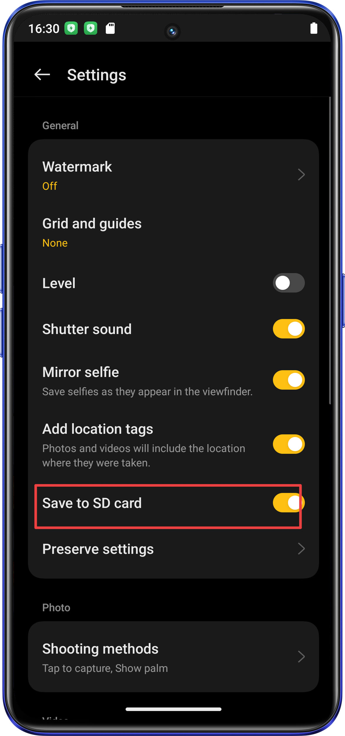 Make sure your phone supports an SD card, then you can install an SD card, and go to 'Camera > Settings-Top right corner > Save to SD card' to save pictures in the SD card, save internal memory.