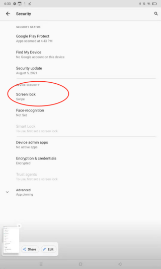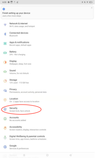 Settings on the main interface > Security > Screen lock > Set screen lock
