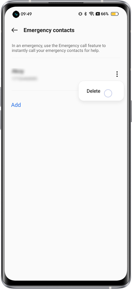realme UI R & Go & S & T Edition: Settings > Security > Emergency information > Emergency Contact > Add contact