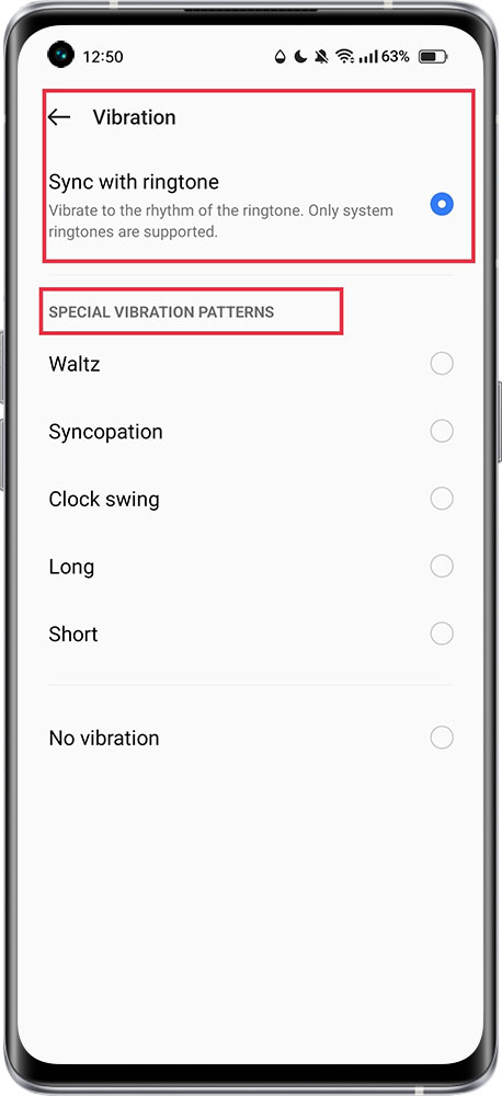 You can turn on Vibration in sync with the ringtone in the ringtone settings. You can also choose special vibration patterns in this interface.
