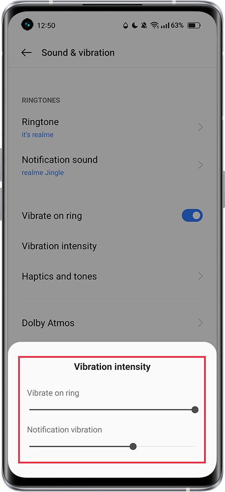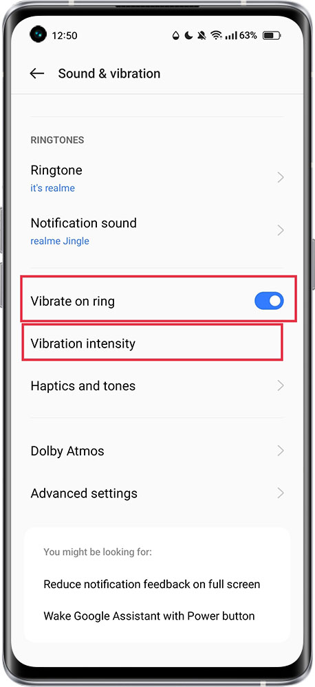 At the same time, you can also turn on the Vibrate on ring in the sound and vibration settings interface. You can also click Vibration intensity below to adjust the vibration intensity that suits you.