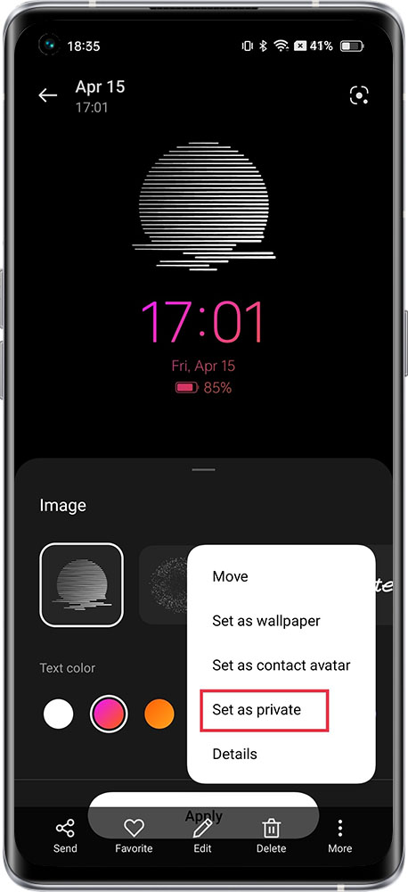realme UI 1.0 & above versions: Click the picture or other file in the album or file management > more in the lower right corner > Set as private