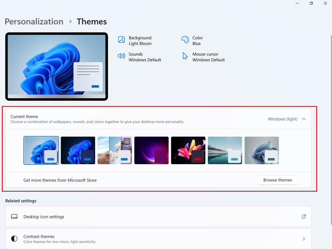 3. Change your favorite theme on this page or browse the Microsoft Store for more themes.