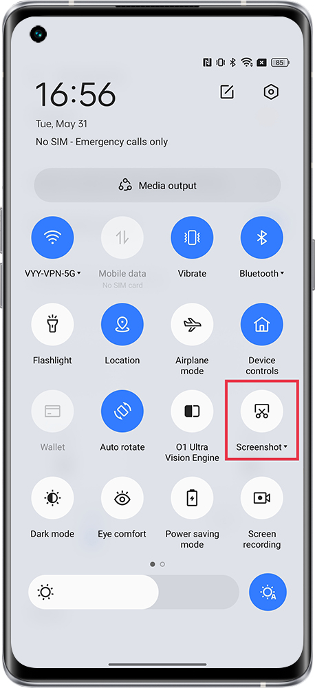 realme UIs: Pull down the status bar and click Screenshot to take a screenshot.