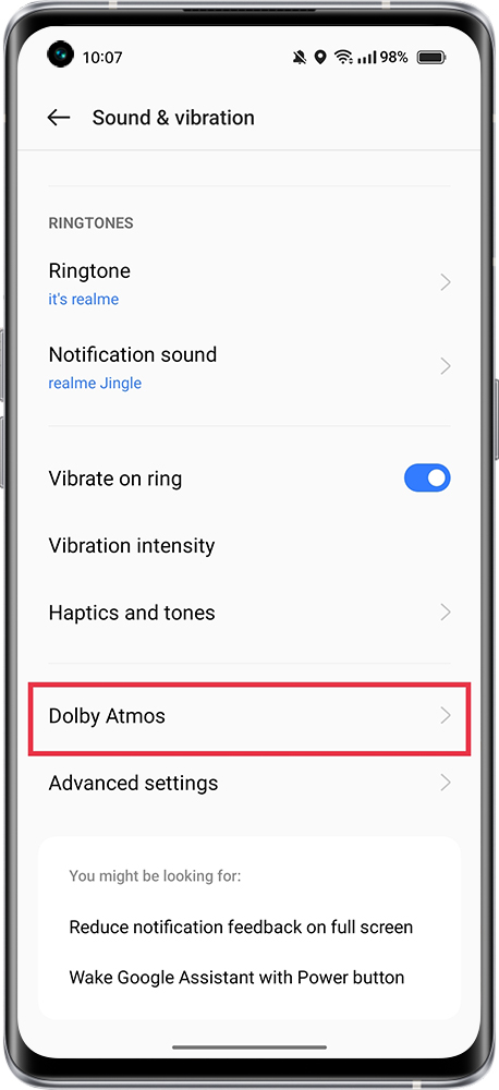 Method 1: Go to Settings > Sound & Vibration > Dolby Atmos.