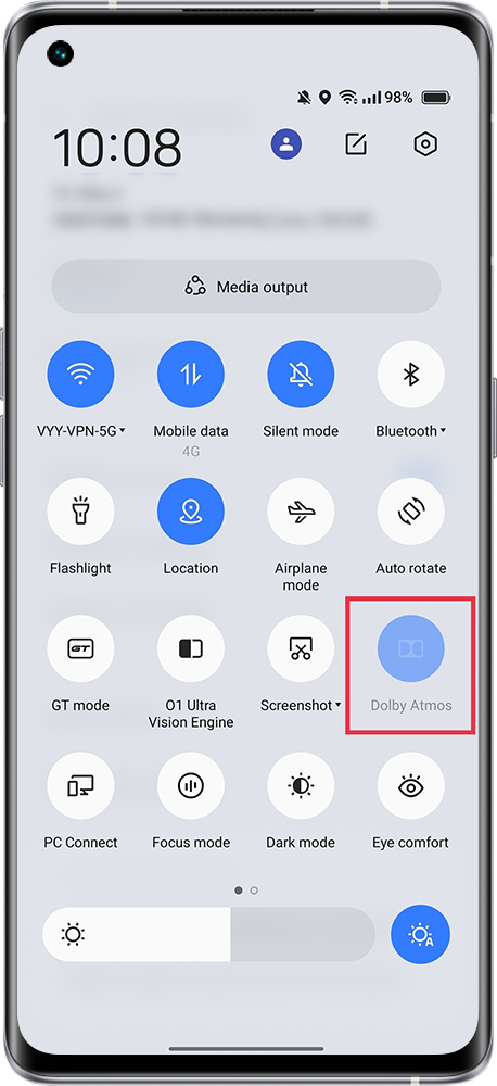 Method 2: Pull down the status bar and click Dolby Atmos.