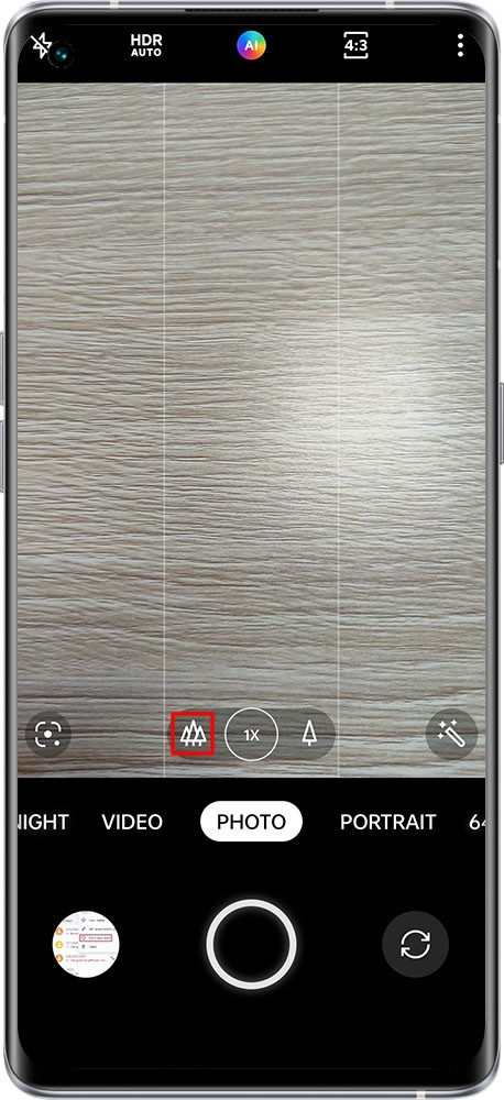realme UI 3.0: Open Camera > find the 1X above Photo > click the icon