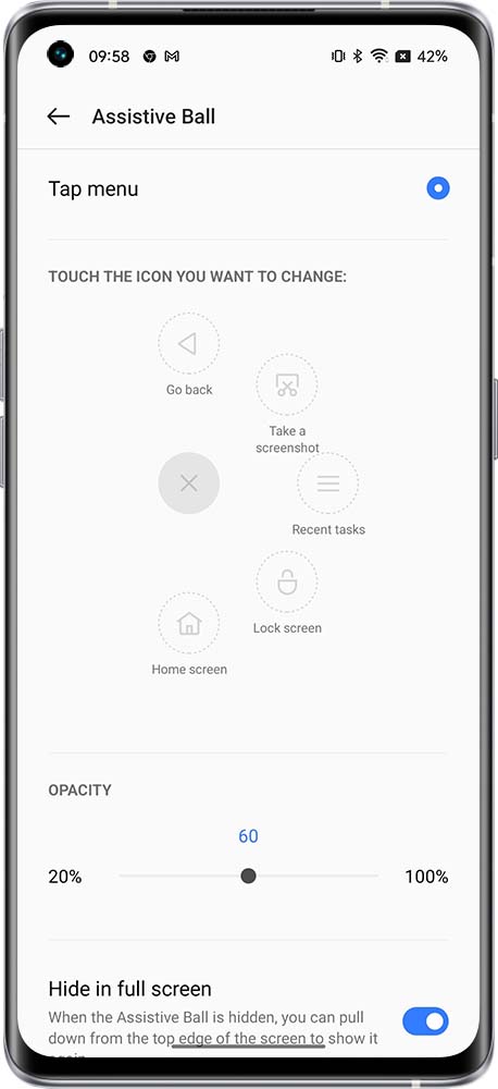After turning on the assistive ball, you can operate the assistive ball by gesture operations and tap menu.