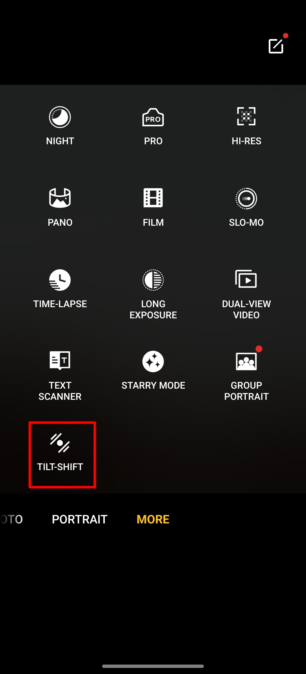 Camera > More > Tilt Shift