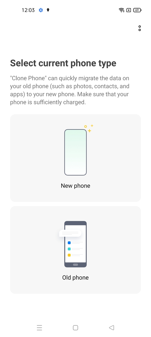 4. Open the Clone phone on the old phone, select the phone as the old phone, and scan the QR code on the new phone to complete the connection.