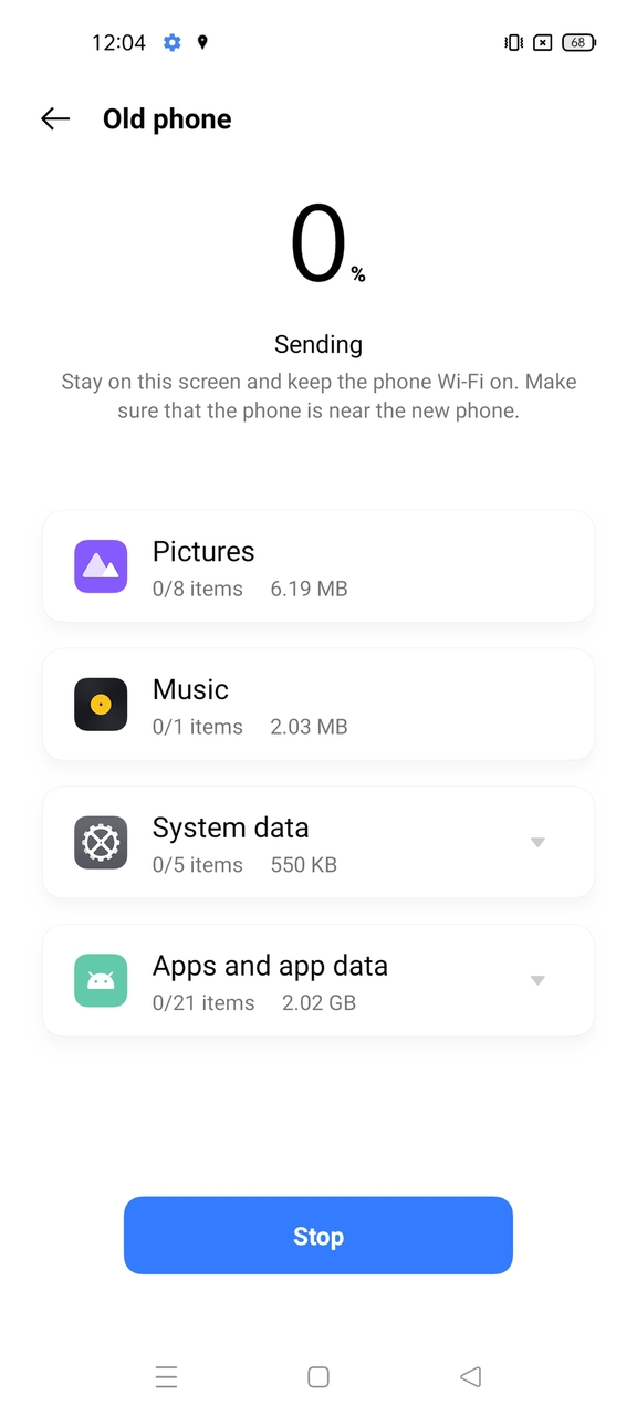 Note: If the same application exists on the new phone and the old phone, the application data on the old phone will overwrite the new phone after moving. Besides, contacts, messages, call logs, pictures, videos, music, and documents will not be overwritten.