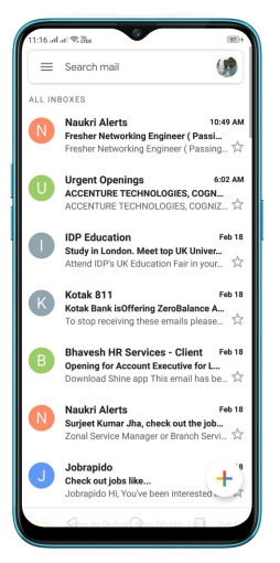 The Gmail app will show you your inbox organized with the most recent mails first. To open an email in the app, click on it.