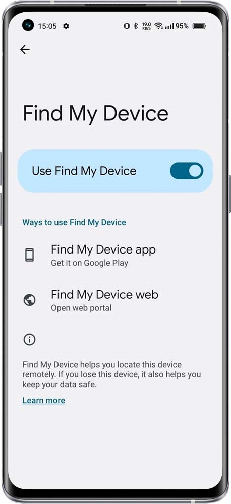 realme R & S & T & GO Edition: Settings > Security > Find My Device.