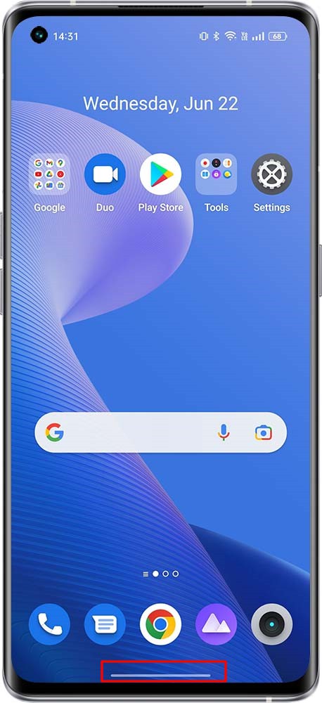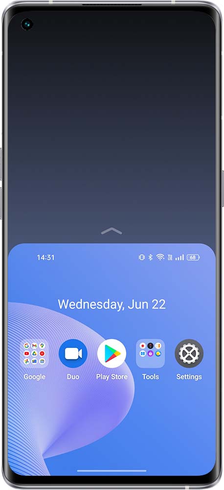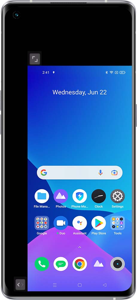 realme UI 2.0: In portrait orientation, pull down from the bottom of the screen to enter one-handed mode.