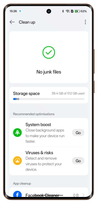 The system will automatically analyze the types of phone files and list junk files that do not affect the normal operation of the system and applications, such as application cache, ad cache, redundant installation packages, and uninstall residues, as recommended cleaning. You can clean these items with confidence.