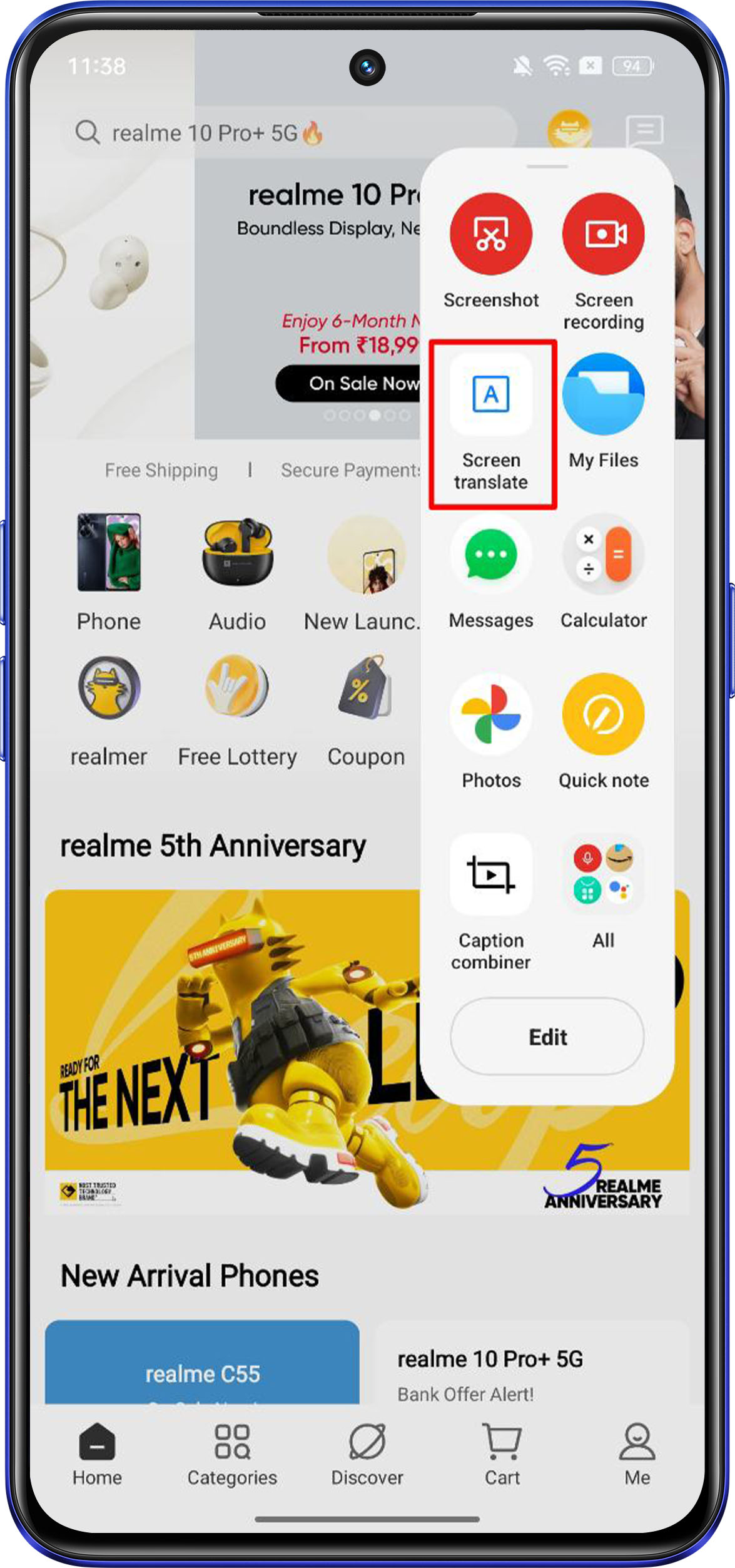 Step 2: Slide Smart sidebar > Screen translate > Select the language you want to translate.