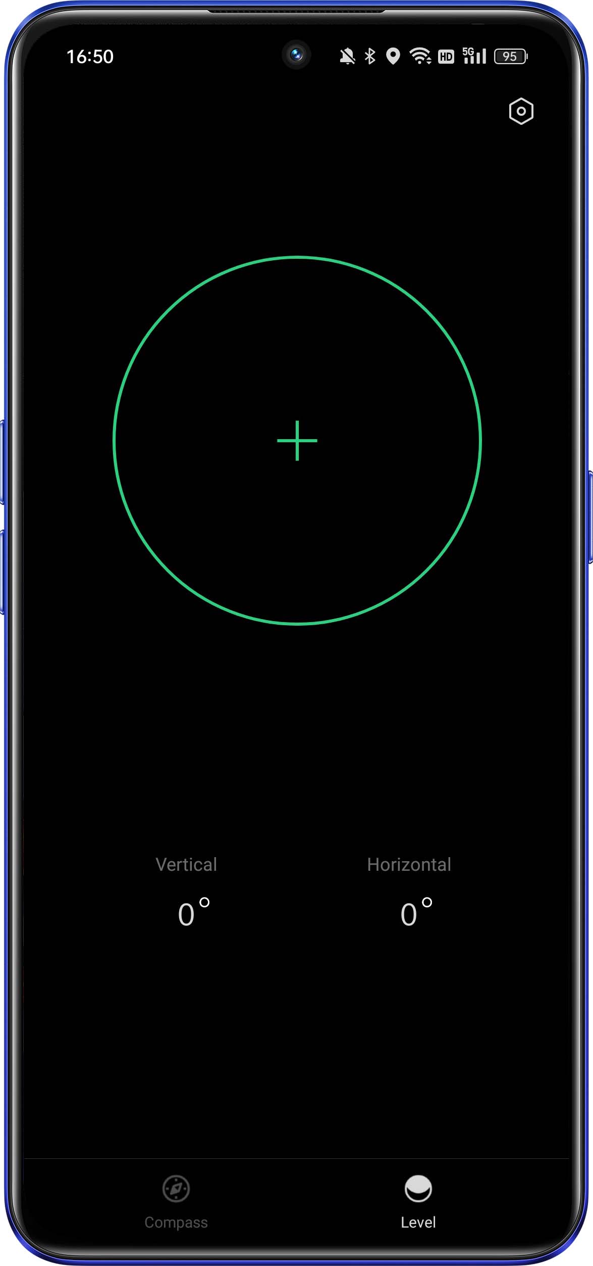 Open Compass > Level, and hold your phone close to an object, such as a photo frame. Rotate the object and phone until you see a green circle appear on the screen.