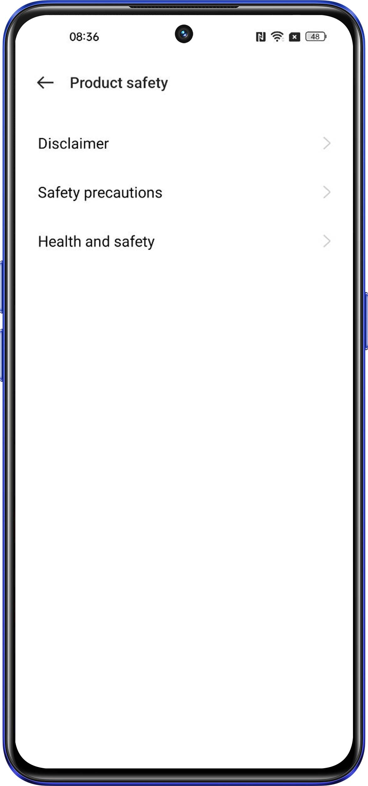 realme UI 3.0 and above versions: Settings > About device > Instructions > Product safety.